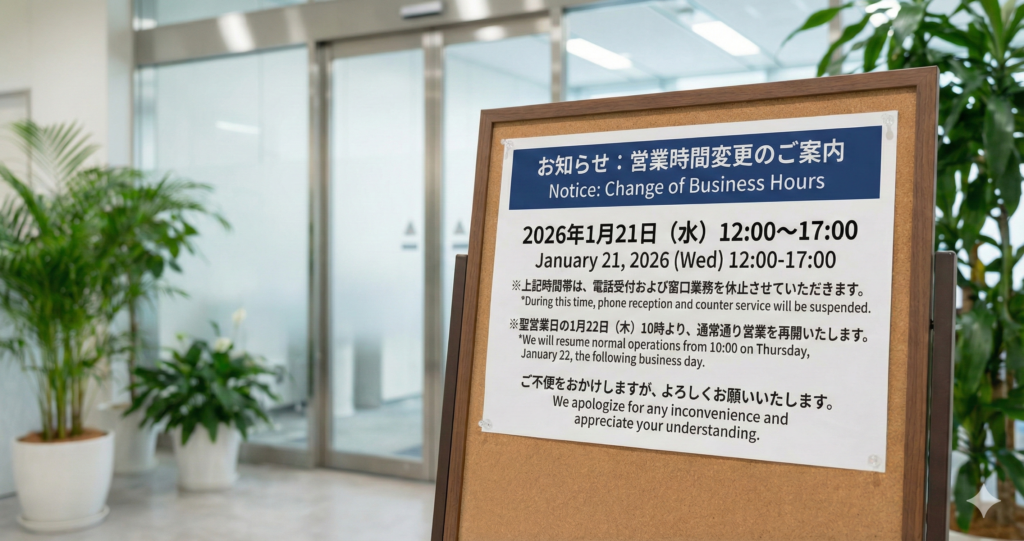 開催するため、営業時間を変更とさせていただきます。